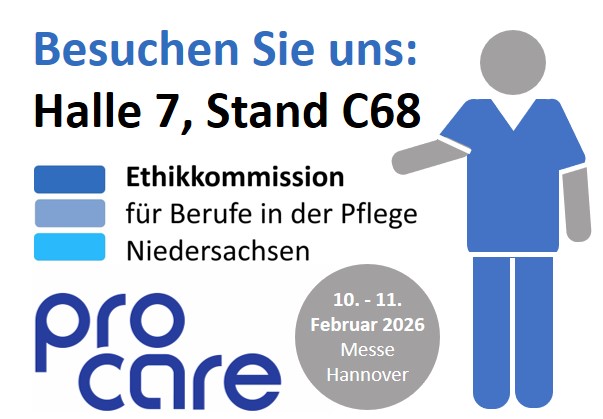 Die Ethikkommission für Berufe in der Pflege wird vom 10.-11.02.2026 auf der ProCare-Messe in Hannover mit einem Stand vertreten sein. Wir freuen uns darauf, Sie dort zu treffen und mit Ihnen ins Gespräch zu kommen.